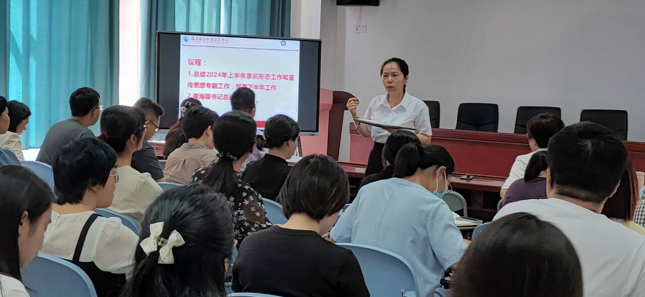 為深入學(xué)習(xí)貫徹習(xí)近平總書記關(guān)于意識形態(tài)和宣傳思想工作的重要指示,全面落實學(xué)校黨委有關(guān)意識形態(tài)和宣傳思想工作的部署要求,9月19日下午,我院在201會議室召開2024年下半年意識形態(tài)工作暨宣傳思想工作專題會議。學(xué)院黨委書記龔海蓉主持并講話,學(xué)院領(lǐng)導(dǎo)班子成員、全體教職工參加會議。