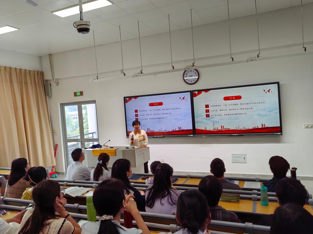 10月24日下午,校紀(jì)委委員、組織統(tǒng)戰(zhàn)部部長(zhǎng)謝濤以《以清廉之風(fēng)啟智潤(rùn)心 助力學(xué)校高質(zhì)量發(fā)展》為題,為護(hù)理學(xué)院全體教職工講授廉潔第一課。