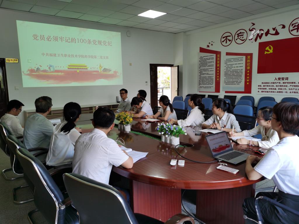 為了進(jìn)一步學(xué)習(xí)貫徹《中國(guó)共產(chǎn)黨紀(jì)律處分條例》,嚴(yán)守黨紀(jì)上遠(yuǎn)離違紀(jì)紅線,同時(shí)為了進(jìn)一步全面貫徹黨的教育方針,落實(shí)立德樹(shù)人根本任務(wù),藥學(xué)院第二黨支部于2021617日召開(kāi)專題學(xué)習(xí)會(huì),深入學(xué)習(xí)《黨員必須牢記的100條黨規(guī)黨紀(jì)——解讀》(以下簡(jiǎn)稱《100條黨紀(jì)黨規(guī)》)與《中國(guó)共產(chǎn)黨普通高等學(xué)?;鶎咏M織工作條例》(以下簡(jiǎn)稱《條例》)。本次專題學(xué)習(xí)由藥學(xué)院第二黨支部書(shū)記劉丹丹同志主持。