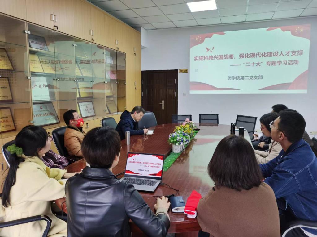 為進(jìn)一步學(xué)習(xí)宣傳貫徹好黨的二十大精神,2023年1月5日,藥學(xué)院第二黨支部書記圍繞“實(shí)施科教興國戰(zhàn)略,強(qiáng)化現(xiàn)代化建設(shè)人才支撐”開展主題黨日專題學(xué)習(xí)。本次活動(dòng)由支部書記劉丹丹主持。