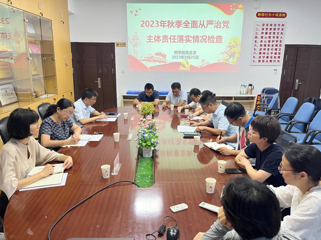 2023年9月25日,藥學(xué)院黨總支在會議室召開2023年秋季全面從嚴治黨主體責任落實情況檢查會。學(xué)校主題教育協(xié)調(diào)推進四組組長、副校長黃銘珊,組員護理學(xué)院黨總支副書記林來元、護理學(xué)院黨總支專職組織員許慧瓊到會指導(dǎo),藥學(xué)院黨政領(lǐng)導(dǎo)班子成員、總支支委、各支部書記參加本次會議。
