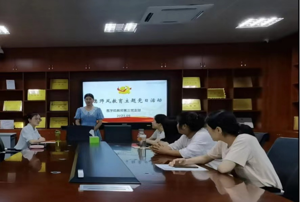 為提升支部黨員教師思想政治素質(zhì),全面加強(qiáng)師德師風(fēng)建設(shè),2023年9月21日,醫(yī)學(xué)院教師第三黨支部開展“師德師風(fēng)教育”主題黨日活動(dòng)?;顒?dòng)由支部書記陳銘主持。