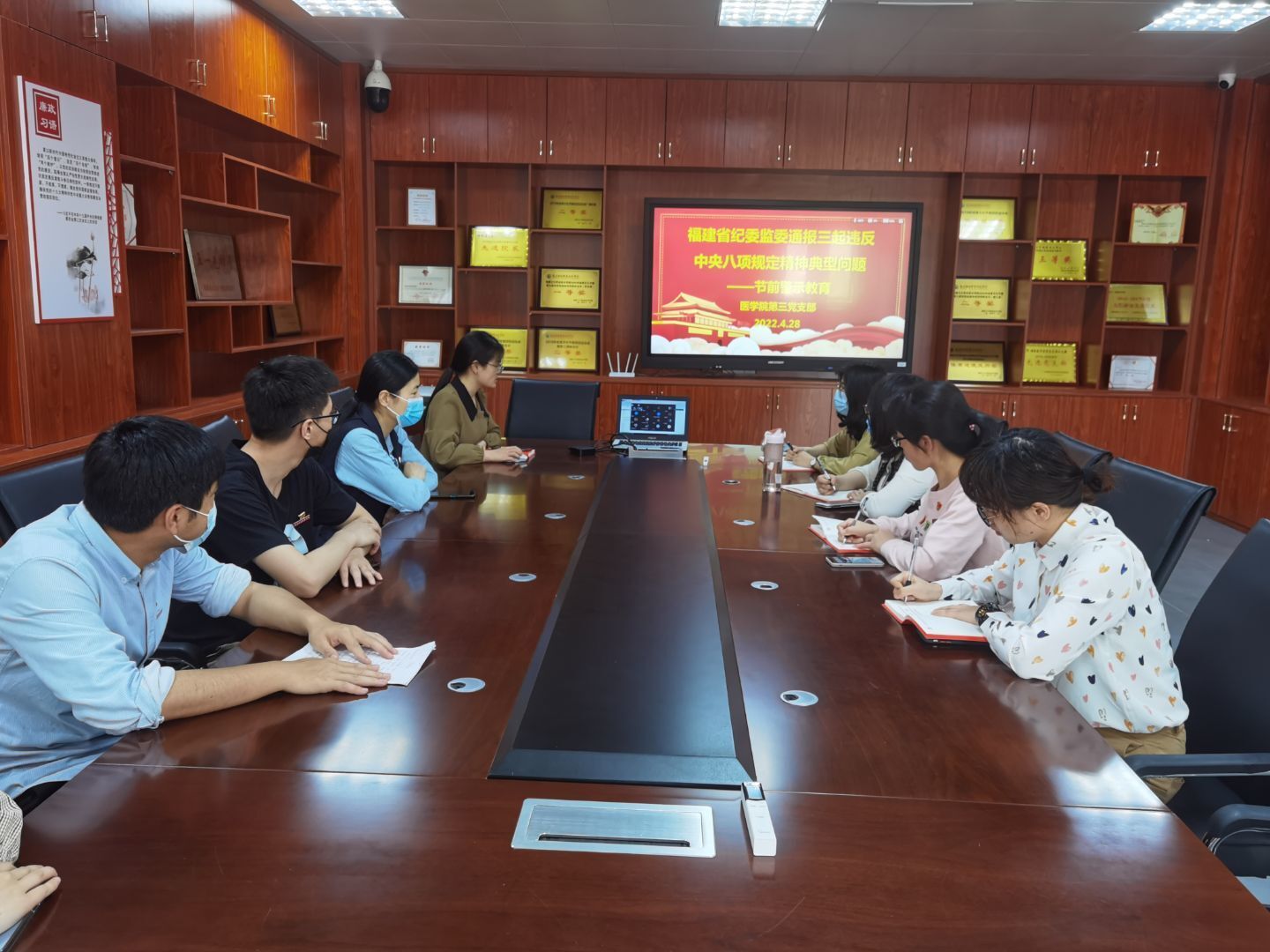 五一勞動節(jié)將至,為深入貫徹落實中央八項規(guī)定精神,進一步嚴明節(jié)日期間紀律要求,樹立風清氣正的良好環(huán)境,2022年4月29日,醫(yī)學院第三黨支部開展節(jié)前警示教育,本次主題黨日由支部紀檢委員兼組織委員林丹丹主持,支部黨員參加活動。