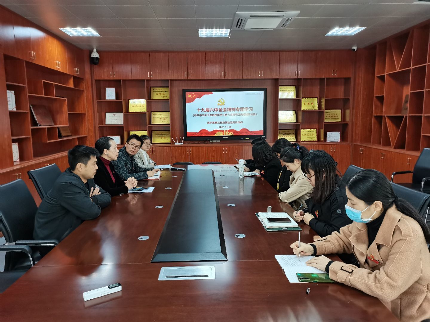 2021年11月24日上午,醫(yī)學(xué)系第三黨支部在實(shí)訓(xùn)樓311開展“十九屆六中全會(huì)精神專題學(xué)習(xí)”主題黨日活動(dòng),此次主題黨日活動(dòng)由支部書記陳銘主持,其內(nèi)容為學(xué)習(xí)《中共中央關(guān)于黨的百年奮斗重大成就和歷史經(jīng)驗(yàn)的決議》(以下簡稱“《決議》”)。