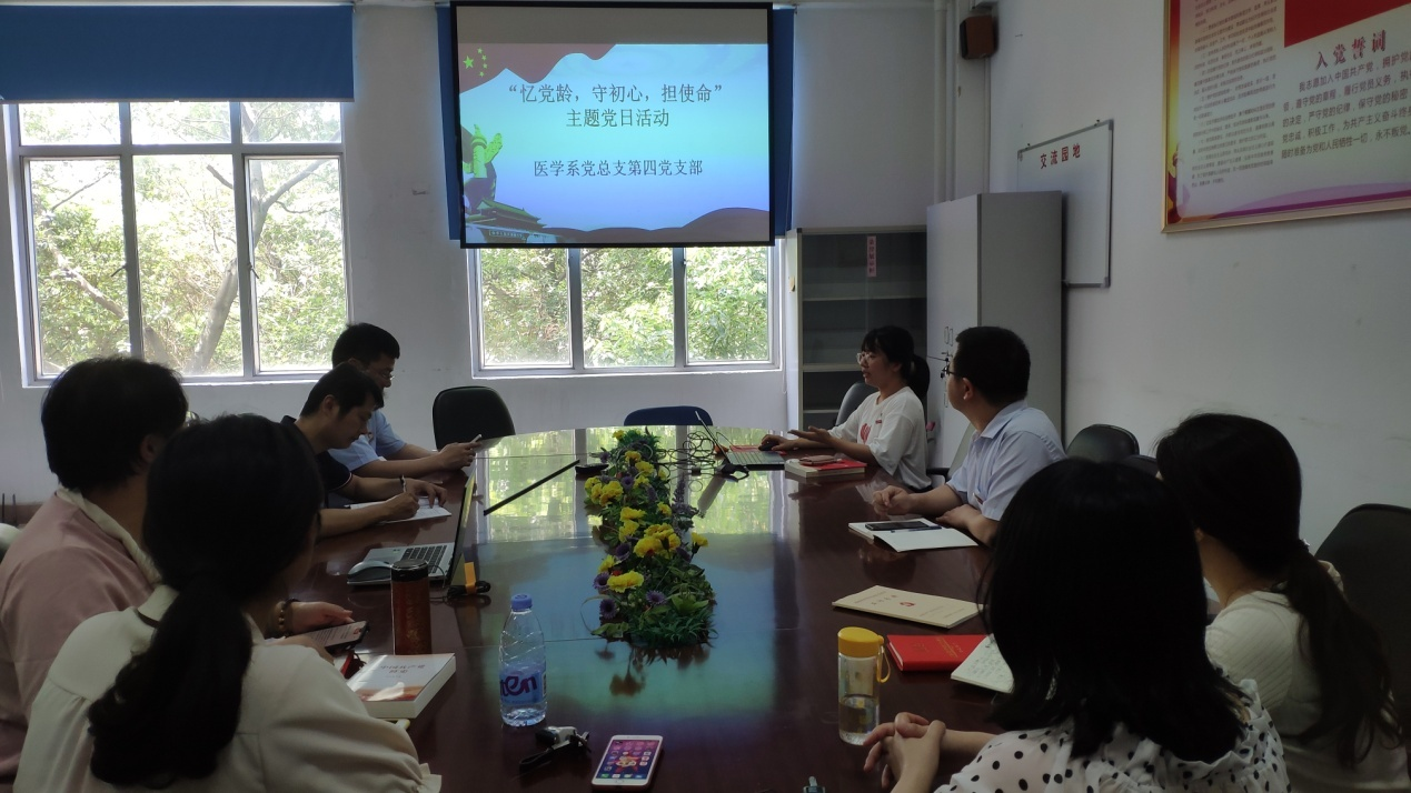 為慶祝中國(guó)共產(chǎn)黨成立100周年,在七一即將來(lái)臨之際,醫(yī)學(xué)系黨總支組織全體黨員開(kāi)展“追憶入黨初心,永葆黨員本色—我的黨齡我銘記”主題黨日活動(dòng)。