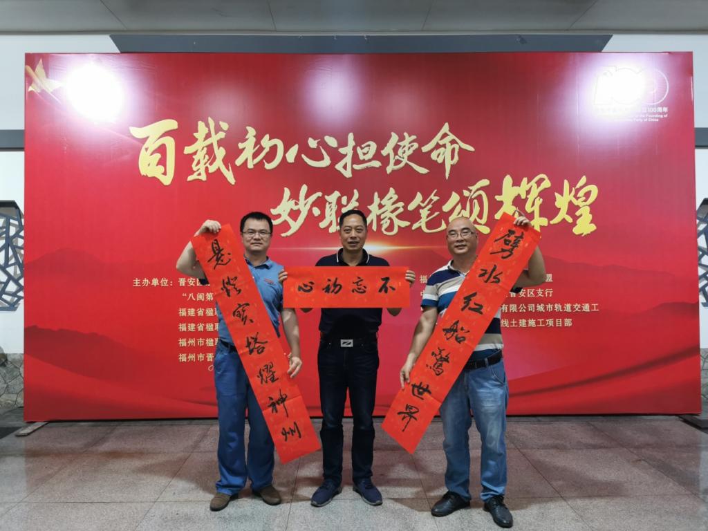 5月12日下午,受晉安區(qū)茶園街道黨工委邀請(qǐng),我系黨總支書記邱滾忠、第四黨支部書記鄧元榮前往“八閩第一站”,參加薪火黨建聯(lián)盟單位聯(lián)合舉辦的慶祝中國共產(chǎn)黨成立100周年系列活動(dòng)之“椽筆書聯(lián)頌黨恩”主題活動(dòng)。