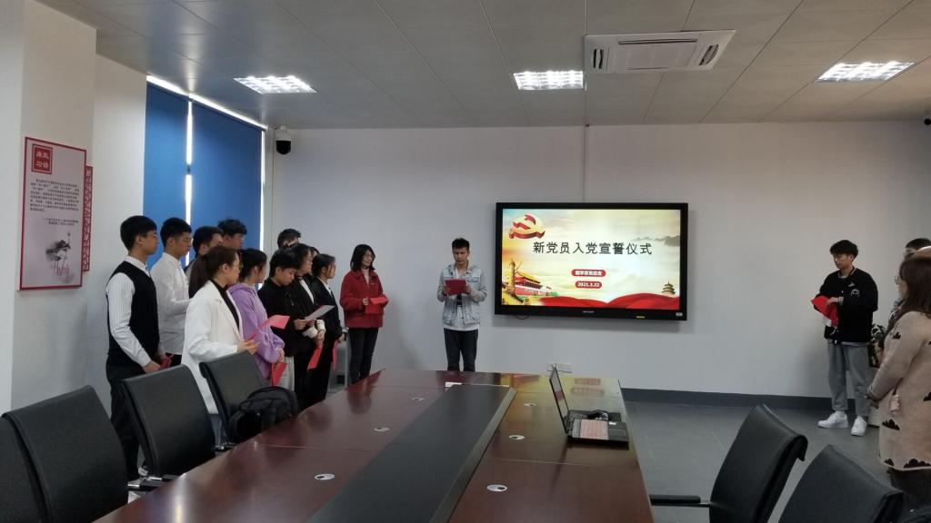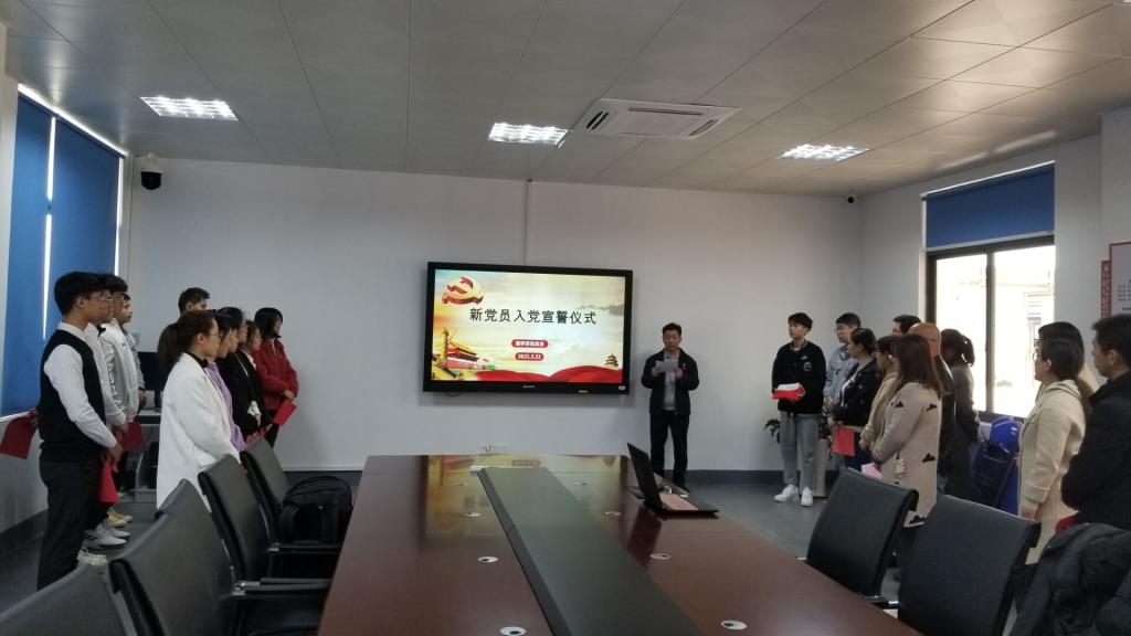 為進一步加強黨員黨性教育,增強新黨員光榮感和使命感,3月22日中午,我系黨總支在實訓樓311舉行新黨員入黨宣誓暨老黨員重溫入黨誓詞儀式。黨總支書記邱滾忠、副書記陳潔、總支委員、各支部委員以及新黨員參加了儀式。