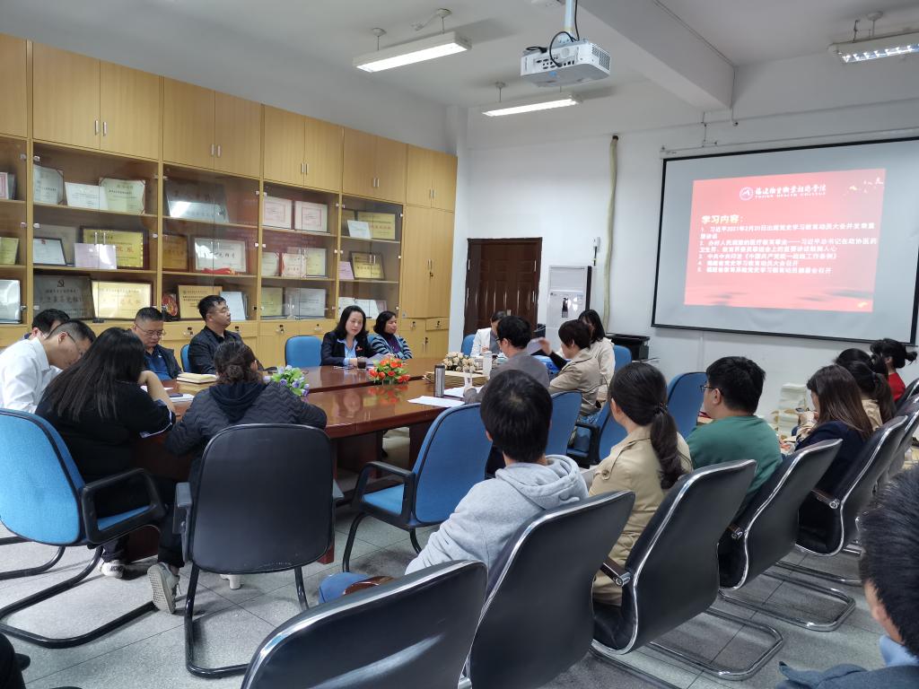 與會人員共同學(xué)習(xí)了《習(xí)近平2021年2月20日出席黨史學(xué)習(xí)教育動員大會并發(fā)表重要講話》、《辦好人民滿意的醫(yī)療教育事業(yè)——習(xí)近平總書記在政協(xié)醫(yī)藥衛(wèi)生界、教育界委員聯(lián)組會上的重要講話鼓舞人心》、《中共中央印發(fā)〈中國共產(chǎn)黨統(tǒng)一戰(zhàn)線工作條例〉》、《福建省黨史學(xué)習(xí)教育動員大會召開》、《福建省教育系統(tǒng)黨史學(xué)習(xí)教育動員部署會召開》,同時組織觀看《金句來了!一起學(xué)總書記在黨史學(xué)習(xí)教育動員大會上的講話》的視頻。