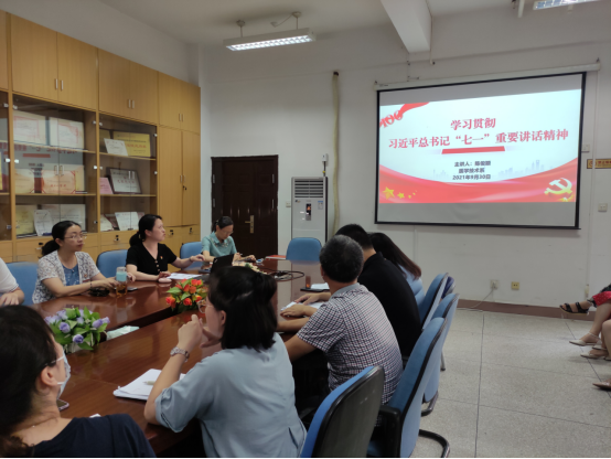 此次黨課宣講,陳俊穎先結(jié)合短視頻,帶領(lǐng)黨員同志重溫了慶祝中國共產(chǎn)黨成立100周年大會的盛況。接下來,她從 “七一”重要講話的精神解讀、四個偉大成就、“九個必須”的歷史經(jīng)驗和重要要求、“一個號召”等四個方面展開黨課內(nèi)容,引導(dǎo)黨員同志深入學(xué)習(xí)習(xí)近平總書記重要講話精神。她特別強調(diào),偉大建黨精神是我們黨的寶貴財富,黨員教師要弘揚好偉大建黨精神,堅定理想信念、立足崗位、守正創(chuàng)新,用實際行動踐行立德樹人根本任務(wù),引導(dǎo)青年成長成才。