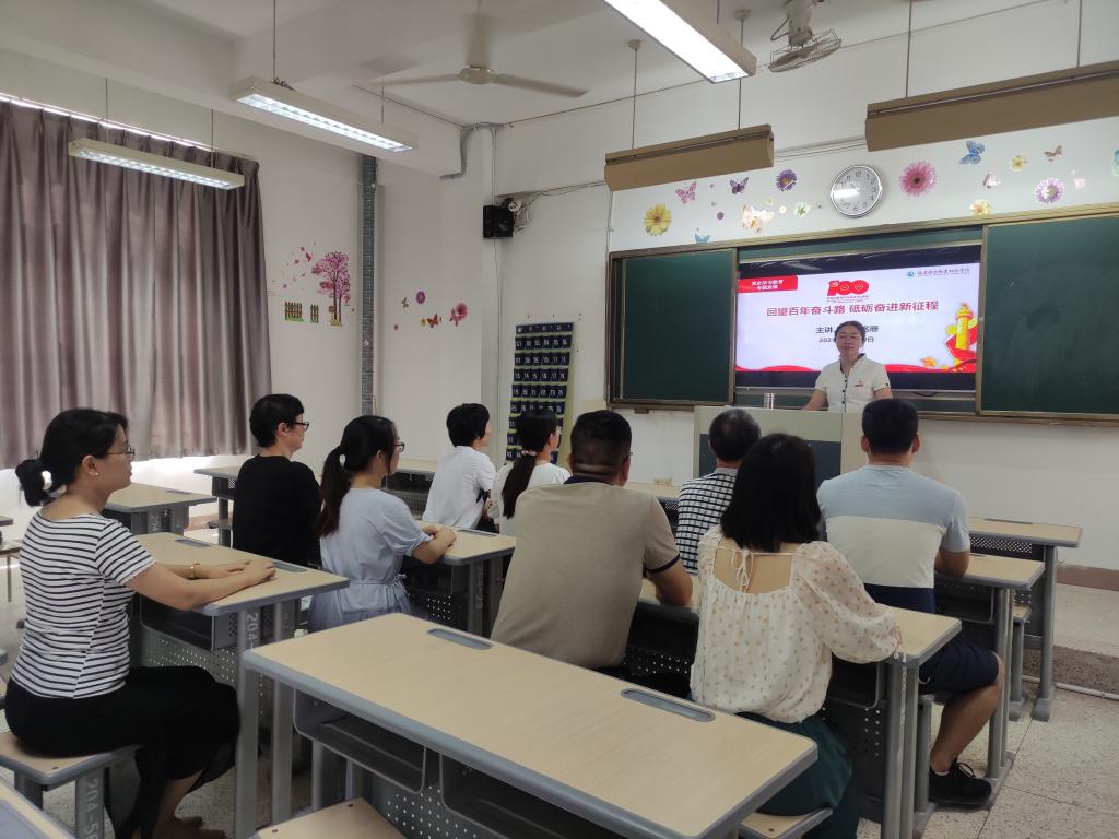 2021年9月9日,在教學樓204,副校長黃銘珊以《回望百年奮斗路砥礪 奮進新征程》為主題,為醫(yī)學技術系第一黨支部黨員上黨課。
