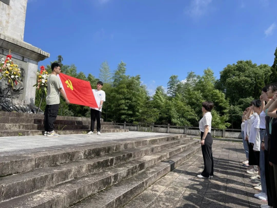 在革命烈士紀(jì)念碑前,黨員們莊嚴(yán)宣誓,重溫入黨誓詞,向紀(jì)念碑默哀、鞠躬致敬。林燕同志向革命烈士敬獻(xiàn)鮮花,表達(dá)對(duì)革命先烈們深切的緬懷和崇高的敬意。