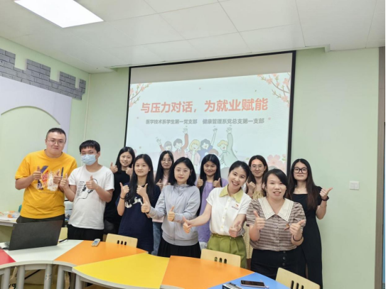 為了更好地緩解畢業(yè)生就業(yè)壓力,發(fā)揮學(xué)生黨支部在服務(wù)學(xué)生畢業(yè)就業(yè)過程中的幫扶作用,2023年6月28日上午,醫(yī)學(xué)技術(shù)系學(xué)生第一黨支部特邀健康管理系黨總支第一支部夏雪梅老師(心理健康教研室)在學(xué)校心理健康教育中心開展了一場名為“與壓力對話,為就業(yè)賦能”的團體心理輔導(dǎo)活動。