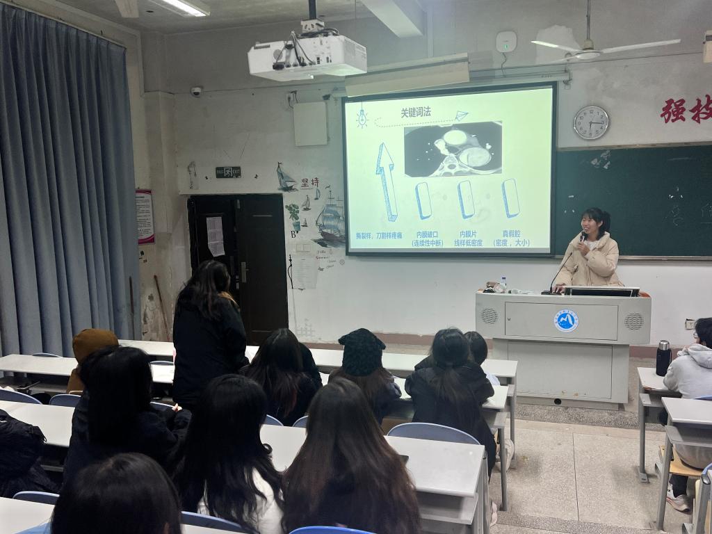 沈鴻君同學(xué)對如何高效聽課進(jìn)行了闡述,并分享了醫(yī)學(xué)影像專業(yè)課的幾種學(xué)習(xí)方法。還根據(jù)自己在實(shí)習(xí)中的經(jīng)驗(yàn)提出,大學(xué)課程的學(xué)習(xí)不僅要注重理論知識的積累,還要關(guān)注實(shí)踐操作能力的培養(yǎng)。她建議學(xué)弟學(xué)妹們在理論課堂上認(rèn)真聽講,還要抓牢實(shí)訓(xùn)機(jī)會,多加練習(xí)。