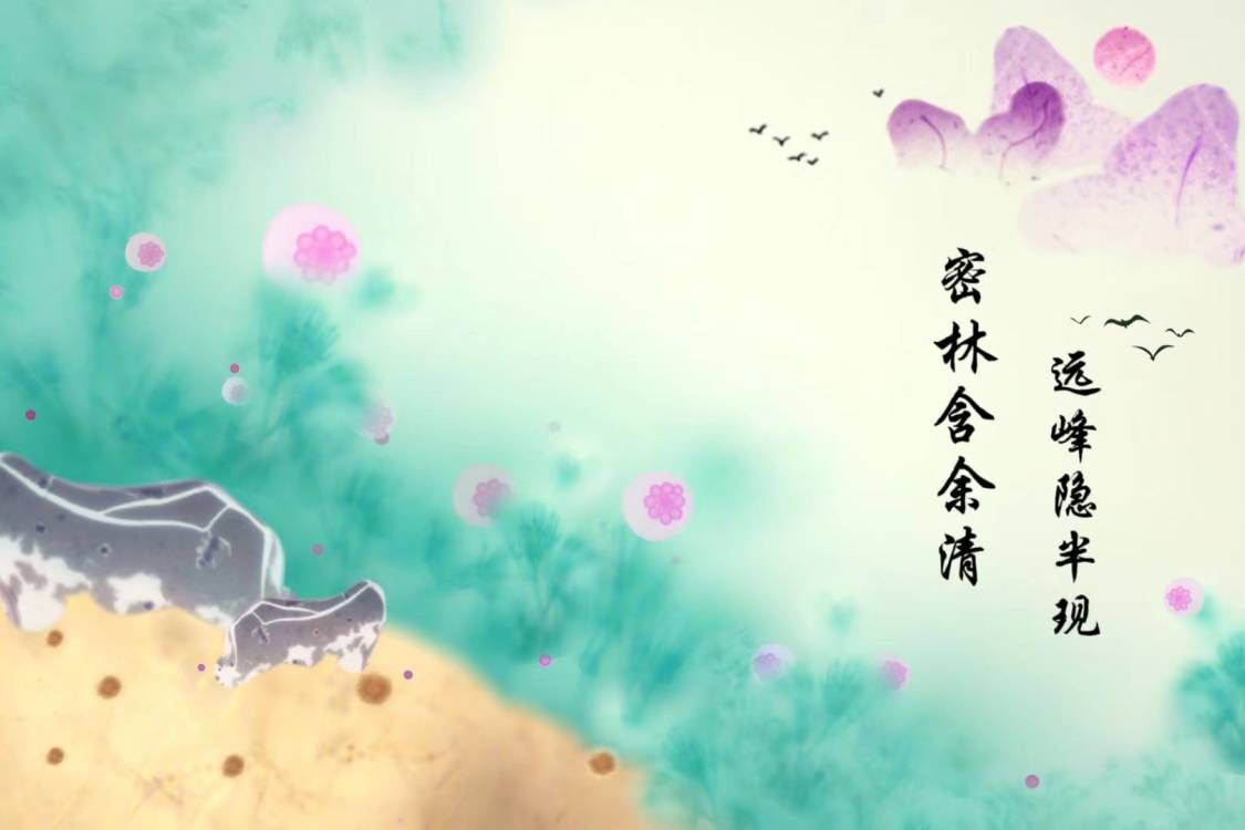 李晶老師說:“這個(gè)作品突出了黃曲霉、青霉的形態(tài)特點(diǎn),巧妙應(yīng)用E花環(huán)點(diǎn)綴,淋漓盡致地展示出中國(guó)山水畫的意境之美。學(xué)生們?cè)趯I(yè)認(rèn)知基礎(chǔ)上的再創(chuàng)作相當(dāng)精彩!”
