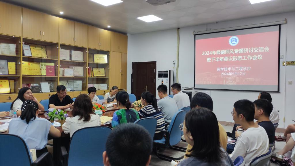 9月12日,醫(yī)學(xué)技術(shù)與工程學(xué)院召開2024年師德師風(fēng)專題研討交流會(huì)暨下半年意識(shí)形態(tài)工作會(huì)議。會(huì)議由學(xué)院黨委書記柯瓊鶯主持,學(xué)院意識(shí)形態(tài)工作領(lǐng)導(dǎo)小組及辦公室成員、學(xué)院院長、專業(yè)帶頭人等參加會(huì)議。