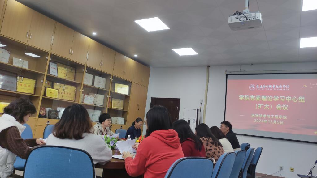 12月5日,醫(yī)學技術與工程學院召開黨委理論學習中心組(擴大)會議,主要學習習近平強軍思想、習近平文化思想,習近平總書記在中共中央政治局第十七次集體學習時、在安徽考察時、在湖北考察時發(fā)表的重要講話精神,同時繼續(xù)深入學習全國教育大會精神。學院黨委書記柯瓊鶯主持會議,學院黨委委員、黨支部書記等參加會議。