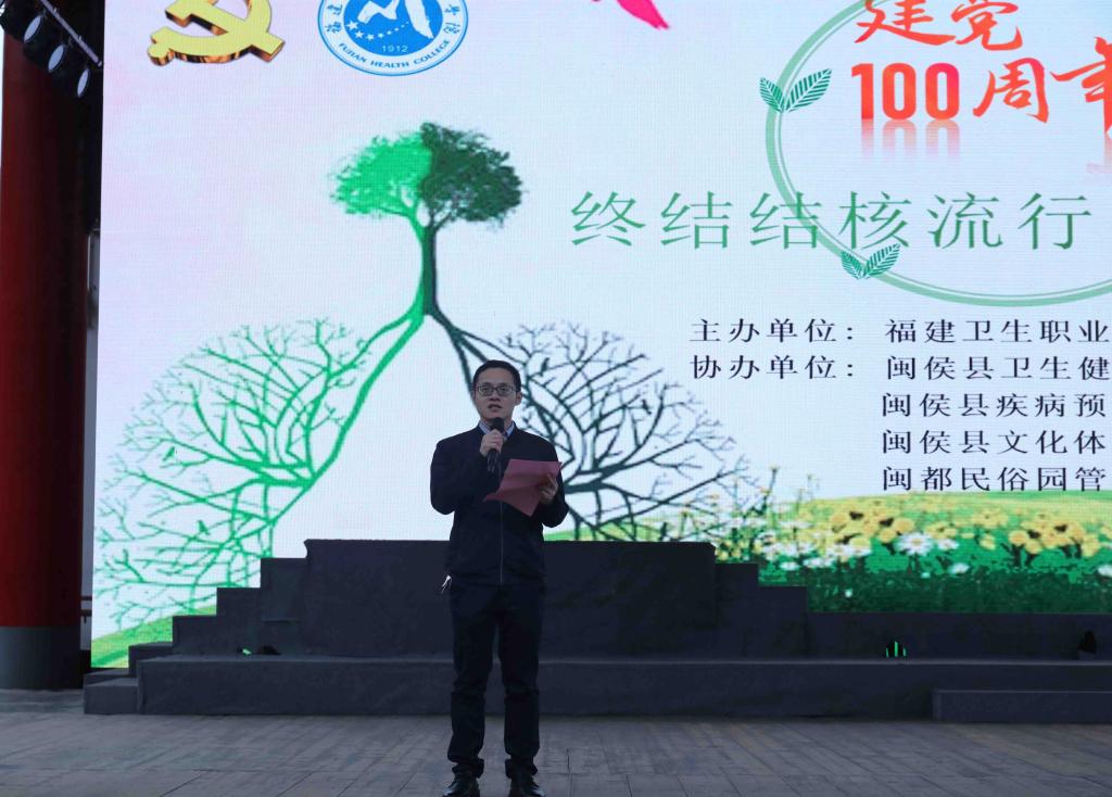 3月21日,第26個(gè)“世界防治結(jié)核病日”來(lái)臨之際,福建衛(wèi)職院聯(lián)合福建省疾控中心、閩侯縣衛(wèi)生局、閩侯縣文旅局、閩侯縣疾控中心、閩都民俗園管理服務(wù)中心等單位在閩都民俗園舉辦以“終結(jié)結(jié)核流行 自由健康呼吸”為主題的結(jié)核病防治健康宣教黨日活動(dòng),以實(shí)際行動(dòng)獻(xiàn)禮建黨100周年華誕。健康管理系師生黨員、學(xué)生志愿者和各協(xié)辦單位領(lǐng)導(dǎo)來(lái)賓參加活動(dòng)?;顒?dòng)由健康管理系黨總支第一支部承辦,副校長(zhǎng)陳貞健以普通黨員身份參加活動(dòng)。