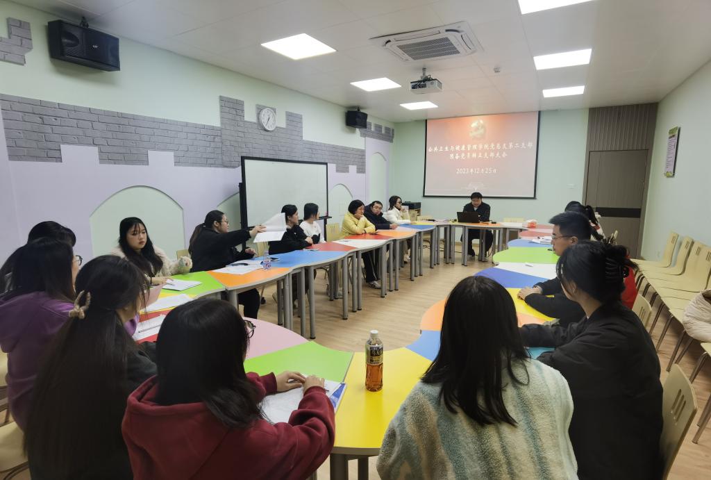 2023年12月25日,公共衛(wèi)生與健康管理學(xué)院黨總支第二支部舉行預(yù)備黨員轉(zhuǎn)正大會(huì)。