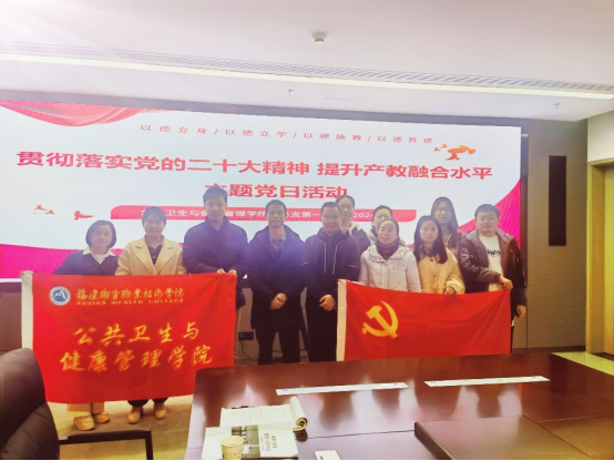 為深入貫徹落實(shí)中共中央辦公廳、國務(wù)院辦公廳印發(fā)的《關(guān)于深化現(xiàn)代職業(yè)教育體系建設(shè)改革的意見》和省政府辦公廳印發(fā)的《關(guān)于進(jìn)一步推動職業(yè)教育服務(wù)經(jīng)濟(jì)社會發(fā)展的十條措施》,1月3日,由公共衛(wèi)生與健康管理學(xué)院黨總支第一支部與福州市疾病預(yù)防控制中心(以下簡稱“福州市疾控”)共同舉辦“貫徹落實(shí)黨的二十大精神 提升產(chǎn)教融合水平”主題黨日活動。此次活動由福州市疾病預(yù)防控制中心相關(guān)人員、公共衛(wèi)生與健康管理學(xué)院黨總支第一支部、預(yù)防醫(yī)學(xué)專業(yè)師生共同參與。