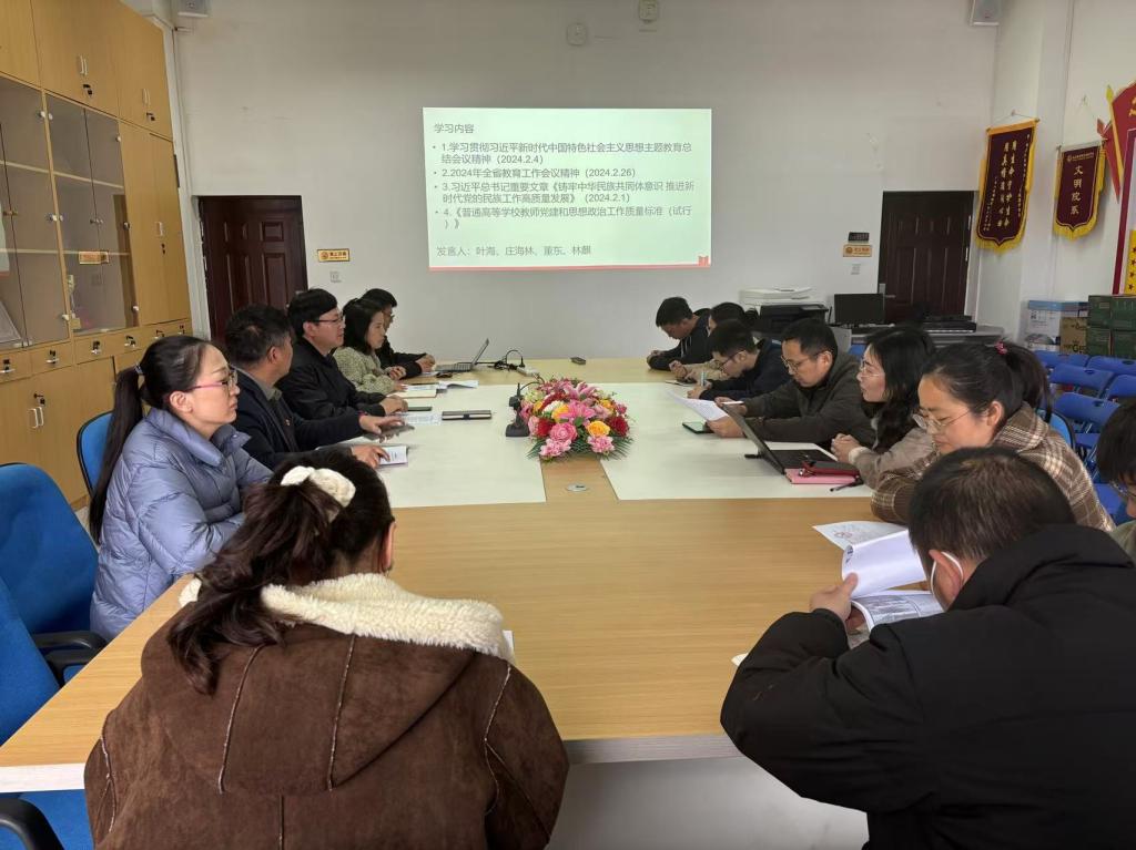 2024年2月28日,學(xué)院理論學(xué)習(xí)中心組在505會(huì)議室舉行了2024年度第二次集體學(xué)習(xí)會(huì)。重點(diǎn)學(xué)習(xí)了以下幾項(xiàng)重要精神和內(nèi)容,2024年全省教育工作會(huì)議精神、學(xué)習(xí)貫徹習(xí)近平新時(shí)代中國(guó)特色社會(huì)主義思想主題教育總結(jié)會(huì)議精神、習(xí)近平總書(shū)記在二十屆中央紀(jì)委三次全會(huì)上的重要講話精神、《習(xí)近平關(guān)于全面依法治國(guó)論述摘編》。