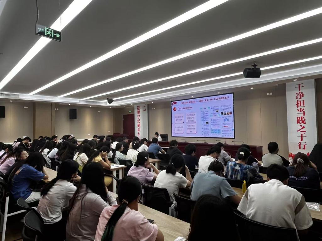 最后通過“展望未來 勇?lián)姑獣鴮懭嫔罨母锏膶嵺`續(xù)篇與時代新篇”激勵師生在新時代新征程上砥礪奮進,奮勇向前。強調(diào),黨的二十屆三中全會精神是一座理論“富礦”,全校師生要持續(xù)發(fā)力、久久為功,在深化內(nèi)化轉(zhuǎn)化上下功夫,爭做黨的二十屆三中全會精神的踐行者。希望,師生們要與時代同頻共振,與國家發(fā)展同向同行,把個人成長自覺融入國家發(fā)展大局,為實現(xiàn)中華民族偉大復興的中國夢貢獻青春力量。