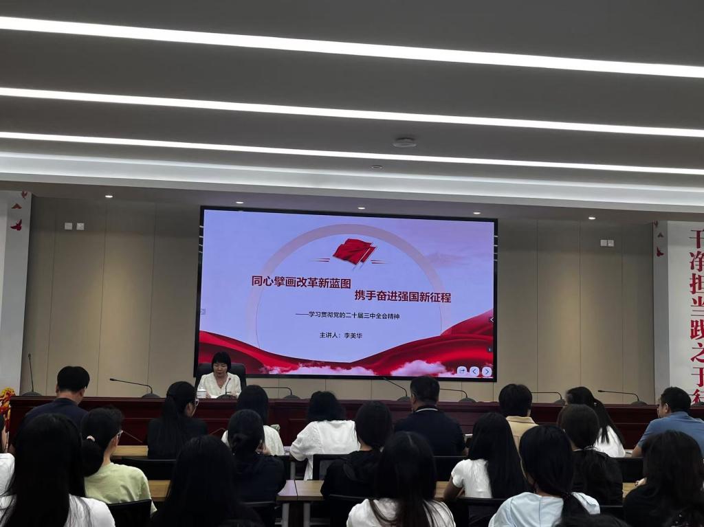 9月12日,校黨委副書記李美華在行政樓6樓會議室為健康學院師生宣講黨的二十屆三中全會精神,學院黨政班子成員、師生黨員、學生代表等共100余人現(xiàn)場聆聽。