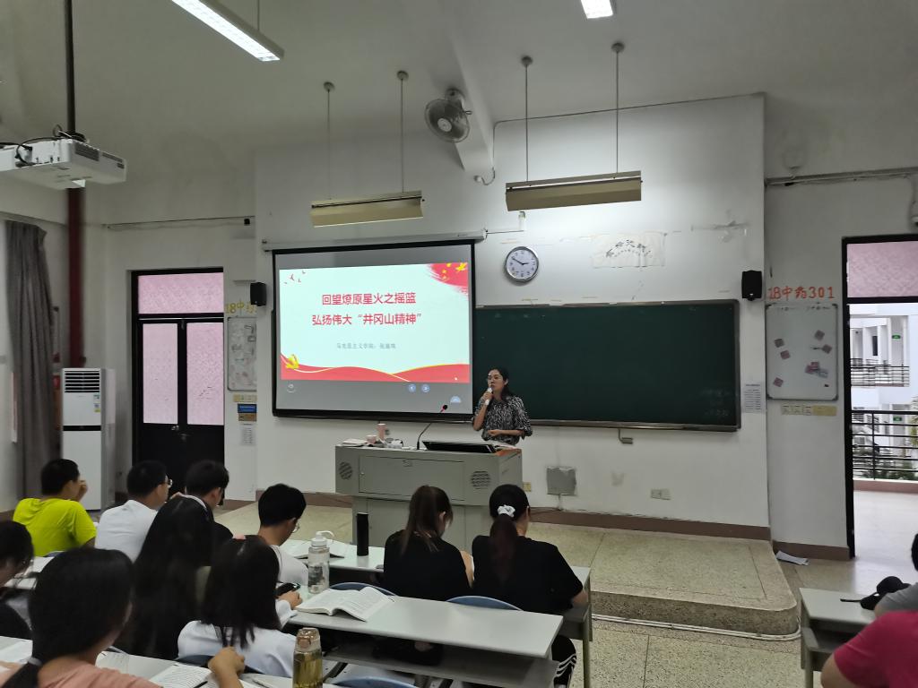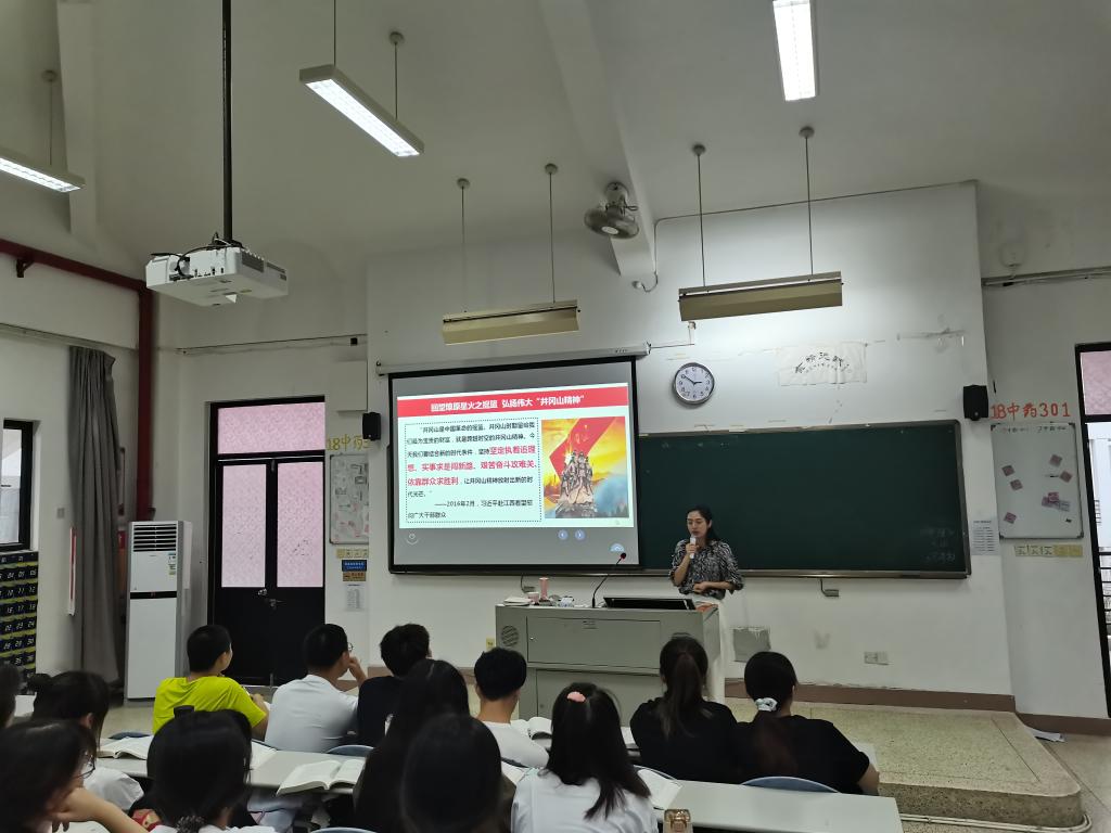 2021年5月18日下午,馬克思主義學(xué)院張茵珠老師在教學(xué)樓309教室為20藥學(xué)301-302、針推302班作《回望燎原星火之搖籃 弘揚(yáng)偉大“井岡山精神”》專題宣講。張茵珠老師通過講述國民革命失敗后,以毛澤東同志、朱德同志為代表的老一輩無產(chǎn)階級革命家,在秋收起義和南昌起義遭到嚴(yán)重挫折的情況下,如何審時(shí)度勢,率領(lǐng)工農(nóng)革命軍進(jìn)軍井岡山,帶領(lǐng)同學(xué)們一起學(xué)習(xí)八百里巍峨井岡山創(chuàng)造的偉大的井岡山精神,以及在新時(shí)代如何弘揚(yáng)和發(fā)展井岡山精神。