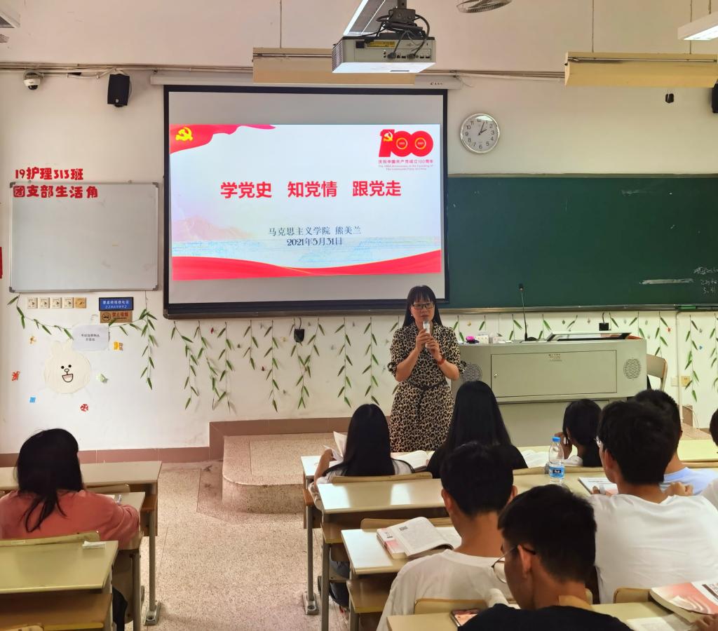 2021年5月31日下午,馬克思主義學院熊美蘭老師在教學樓212為20級臨床醫(yī)學305、306學生作題為《學黨史 知黨情 跟黨走》的黨史主題宣講。
