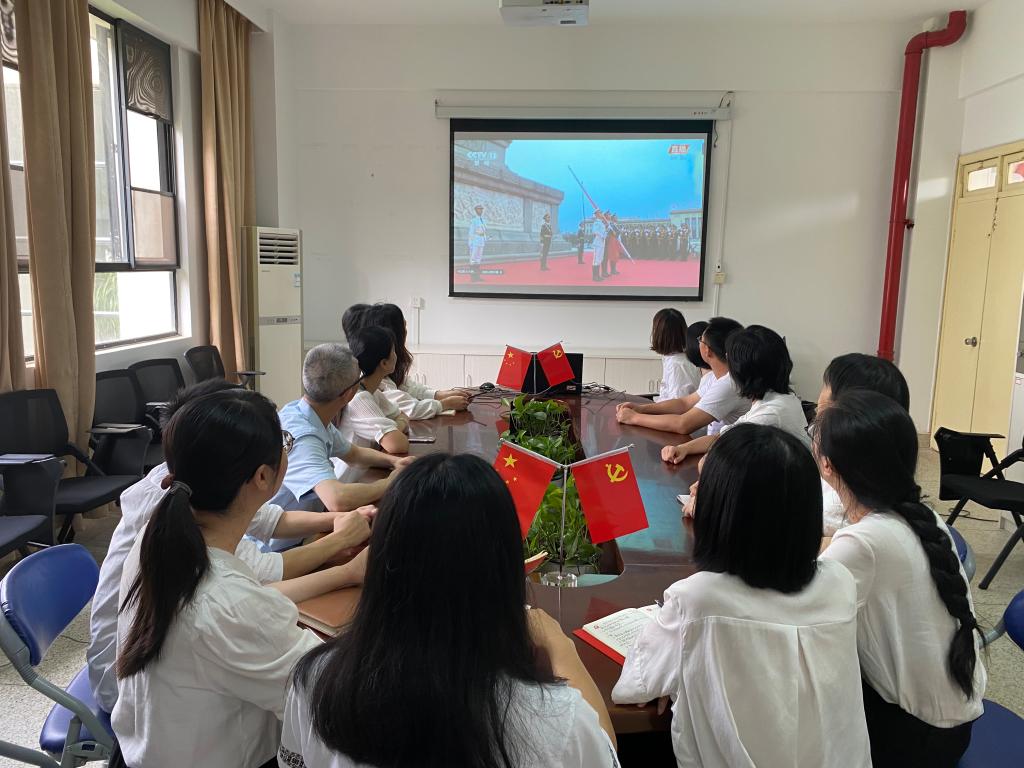 為推動黨史學(xué)習(xí)教育在基層黨組織中走深走實(shí),及貫徹落實(shí)省委“再學(xué)習(xí)、再調(diào)研、再落實(shí)”活動精神,直屬馬克思主義學(xué)院黨支部全體黨員教師于2021年7月1日上午8:00準(zhǔn)時(shí)集合在會議室107,集中學(xué)習(xí)和觀看實(shí)況直播“慶祝中國共產(chǎn)黨成立100周年大會”,同時(shí)傳達(dá)學(xué)習(xí)了習(xí)近平總書記在慶祝中國共產(chǎn)黨成立100周年“七一勛章”頒授儀式上重要講話精神,會議由直屬馬克思主義學(xué)院黨支部書記、黨史學(xué)習(xí)教育領(lǐng)導(dǎo)小組組長熊美蘭主持。