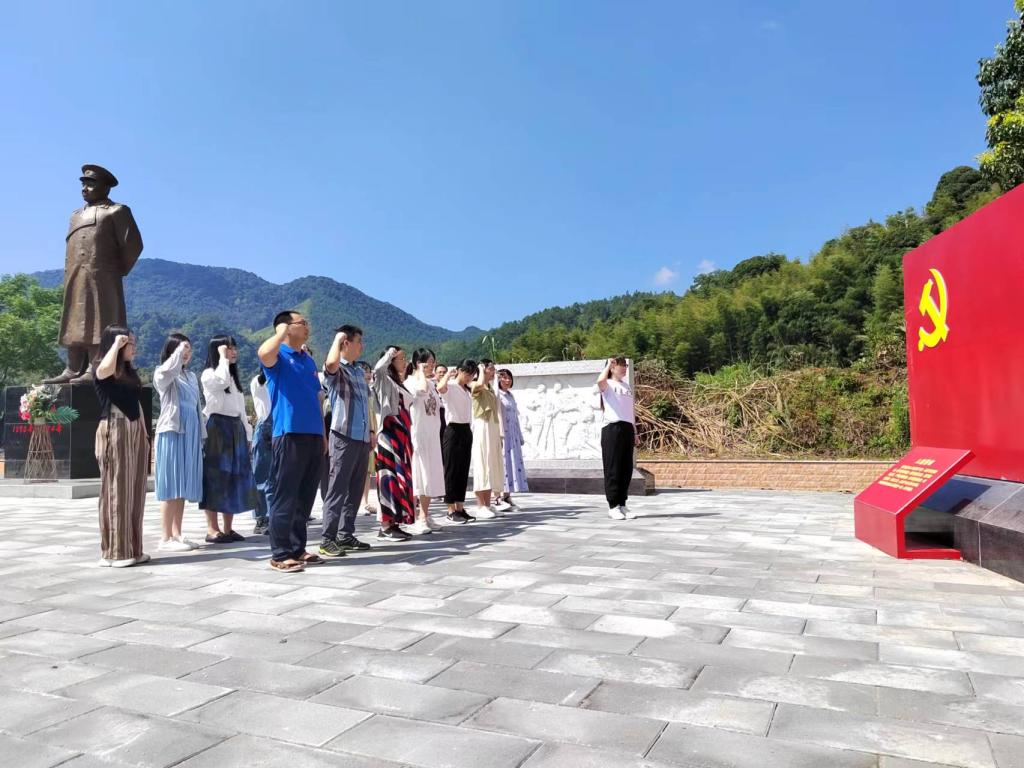 上午,研修班來到了中國歷史文化名村——明溪縣夏陽鄉(xiāng)御簾村。第一站參觀明溪縣革命紀(jì)念園,全體黨員教師懷著無比崇敬的心情,向烈士雕像敬獻(xiàn)花籃并集體默哀,深切緬懷革命烈士豐功偉績,寄托綿綿哀思;面對鮮紅的黨旗,大家在黨支部書記熊美蘭的帶領(lǐng)下,高舉右手莊嚴(yán)宣誓,重溫入黨誓詞時(shí)的滿腔熱血及堅(jiān)定決心。