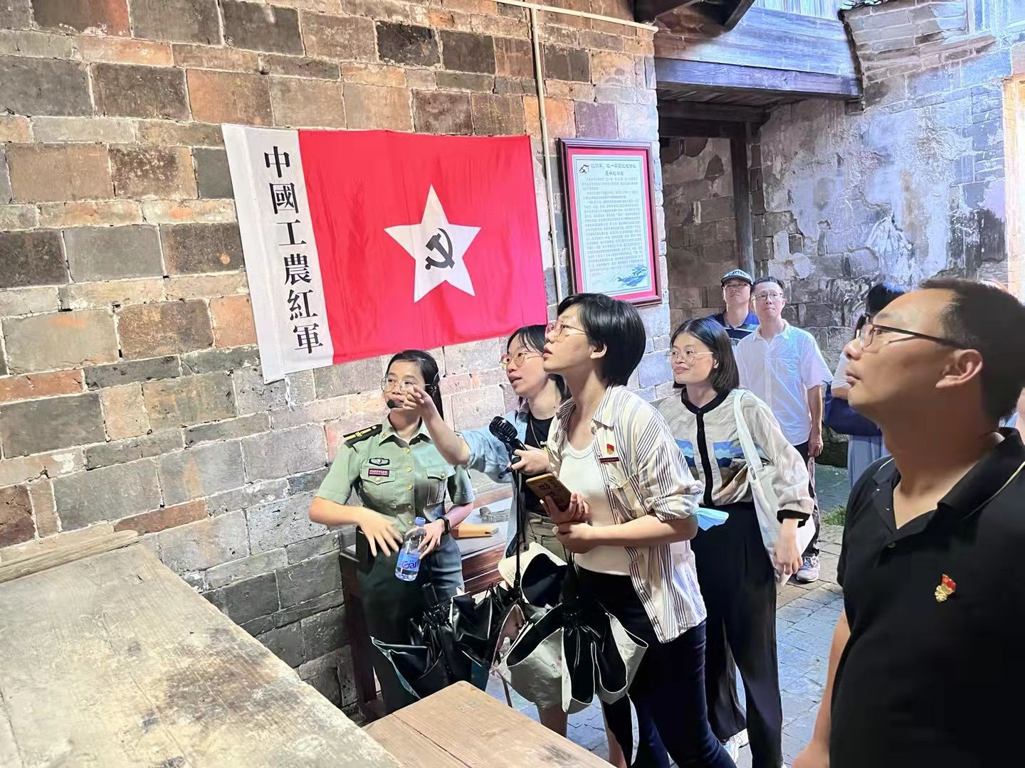 習(xí)近平總書記指出:“福建是革命老區(qū),黨史事件多、紅色資源多、革命先輩多,開展黨史學(xué)習(xí)教育具有獨(dú)特優(yōu)勢?!睘榱松钊雽W(xué)習(xí)中國革命的光輝歷史,2022年7月23日,直屬馬克思主義學(xué)院黨支部開展暑期思想政治理論課教師實踐研修班。今天的行程從明溪輾轉(zhuǎn)到寧化,主要是參觀長征出發(fā)紀(jì)念館和曹坊鎮(zhèn)下曹紅軍村,以及客家祖地三地教學(xué)。