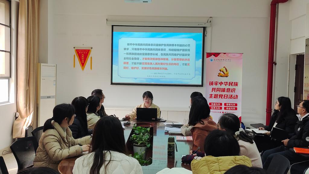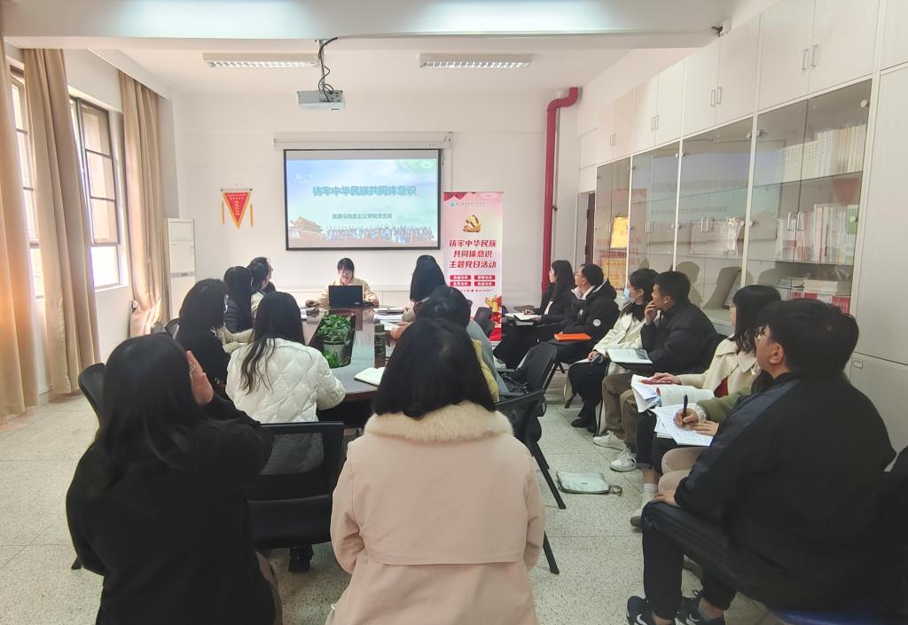 為進(jìn)一步深入貫徹落實(shí)中央民族工作會(huì)議和習(xí)近平總書(shū)記在中央政治局第九次集體學(xué)習(xí)時(shí)的重要講話精神,進(jìn)一步鑄牢中華民族共同體意識(shí),2024年3月13日,直屬馬克思主義學(xué)院黨支部(以下簡(jiǎn)稱“馬院支部”)在行政樓107開(kāi)展”鑄牢中華民族共同體意識(shí)“主題黨日活動(dòng),活動(dòng)由黨支部書(shū)記熊美蘭主持。
