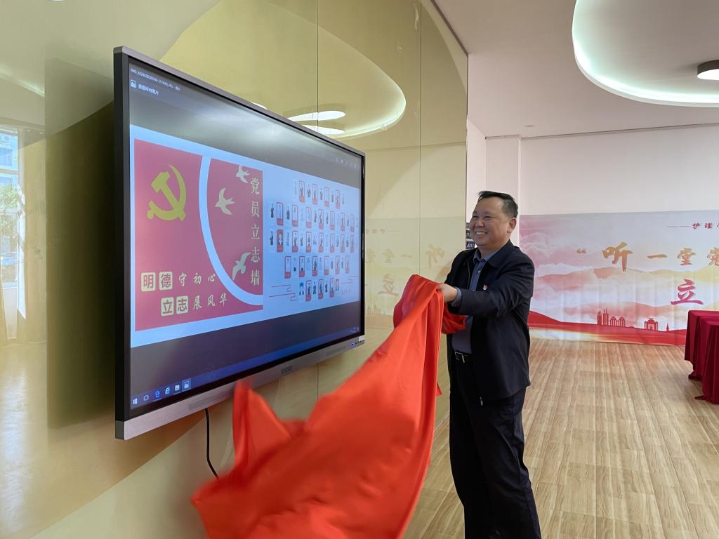 贈書儀式后,曾武祈為黨員立志墻揭幕。他首先向大家表達(dá)了節(jié)日的祝福,并結(jié)合本次活動對全體教師提出希望,希望大家亮身份、明志向,言行如一,爭做一名有溫度、有溫情的職教先生。