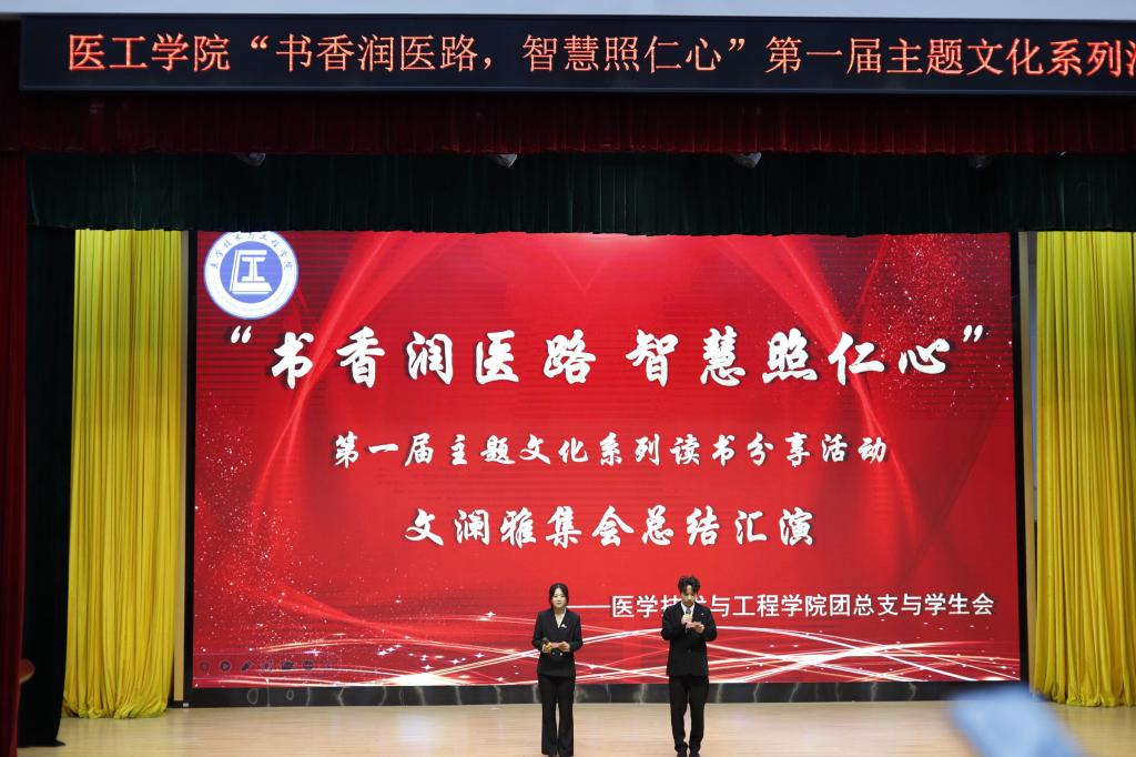 為搭建深度閱讀與思想碰撞的平臺,鼓勵同學們在分享中拓展認知邊界,在交流中促進精神成長,樹立優(yōu)良學風,為未來發(fā)展打下堅實基礎,近日,醫(yī)學技術與工程學院學生第一黨支部、第二黨支部、學院團總支聯(lián)合學院學生會在崇學廳開展“書香潤醫(yī)路,智慧照仁心”第一屆主題文化系列活動——文瀾雅集總結匯演。這場持續(xù)3個月的文化盛宴,以閱讀為紐帶,串聯(lián)起個人成長、紅色傳承與心靈探索,在總結匯演中綻放出別樣光彩。學生工作部、醫(yī)學技術與工程學院相關負責人及學院全體輔導員參與本次活動。