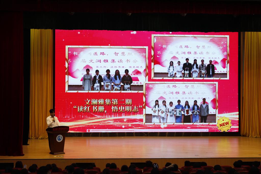 匯演現(xiàn)場,醫(yī)工學院黨委書記柯瓊鶯為“優(yōu)秀讀者”“優(yōu)秀隊伍”頒獎,肯定師生在活動中的投入與成長。她提出三點殷切希望:一是讓閱讀成為終身習慣,讓思考伴隨成長。二是從紅色經(jīng)典中汲取力量,將個人理想融入時代洪流。三是善用書籍解答心靈困惑,知行合一砥礪品格。