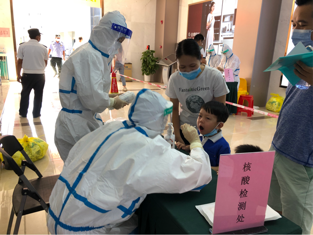 在疫情面前不退縮、在困難面前不低頭,這是我們中華兒女的責任,更是義務。穿上防護服,密不透風,不一會全身濕透,結束時脫下手套里頭全是汗水。雖然天氣炎熱,參與檢測的群眾非常配合仍然積極響應號召,主動出門到指定地點做核酸檢測。大家的配合,使得核酸采樣快速而又順利。這次志愿活動時間不長,于我卻是一次難忘的經(jīng)歷,讓我更切實感受到責任感與使命感,讓我更堅定自己未來想成為什么樣的人。