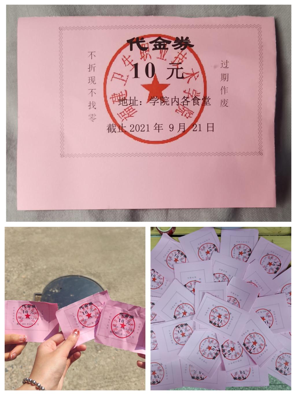 學(xué)校為每一位在校學(xué)生發(fā)放3張面值10元的節(jié)日特別用餐代金券,同學(xué)們可憑代金券到校內(nèi)任一餐廳免費(fèi)用餐。