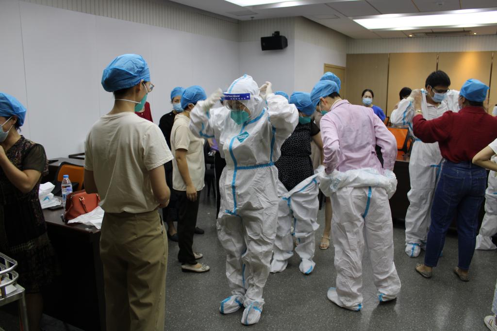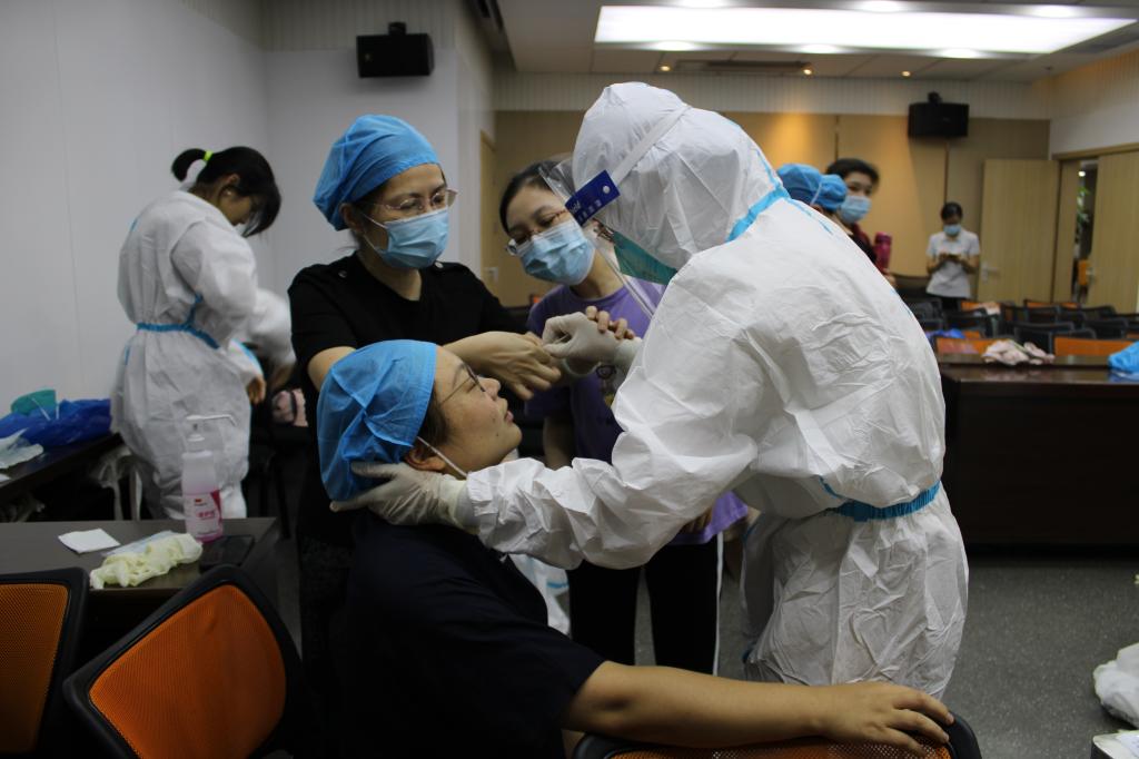 9月18日下午,10支志愿后備隊(duì)伍統(tǒng)一進(jìn)行新型冠狀病毒感染預(yù)防與控制技術(shù)指南的理論學(xué)習(xí),以及穿脫防護(hù)用品、口咽拭子標(biāo)本、鼻咽拭子標(biāo)本等技能的采集培訓(xùn)。