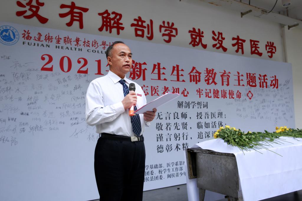 11月18日,我校舉辦以“不忘醫(yī)者初心,牢記健康使命”為主題的2021級新生生命教育系列活動。校長許能鋒,團(tuán)委、學(xué)生工作部、醫(yī)學(xué)系負(fù)責(zé)人,醫(yī)學(xué)基礎(chǔ)部全體教師、輔導(dǎo)員代表、各系2021級學(xué)生代表、第二課堂學(xué)生參加活動,閩侯縣團(tuán)委、閩侯縣青少年宮、福州英華職業(yè)學(xué)院、閩侯職業(yè)中專學(xué)校師生代表受邀出席,共有397人參加此次活動。