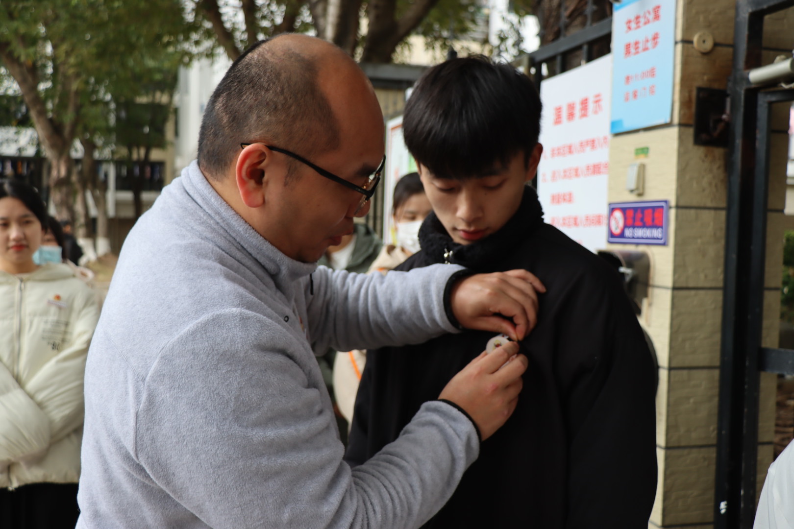 掛牌佩徽章 樹先鋒模范。雙方支部黨員代表為學(xué)生入黨積極分子和預(yù)備黨員宿舍掛牌,并為學(xué)生入黨積極分子和預(yù)備黨員佩戴徽章,鼓勵(lì)全體學(xué)生黨員、入黨積極分子爭(zhēng)做宿舍文明的踐行者、優(yōu)良學(xué)風(fēng)的先行者、和諧氛圍的調(diào)劑者、安全生活的守護(hù)者。