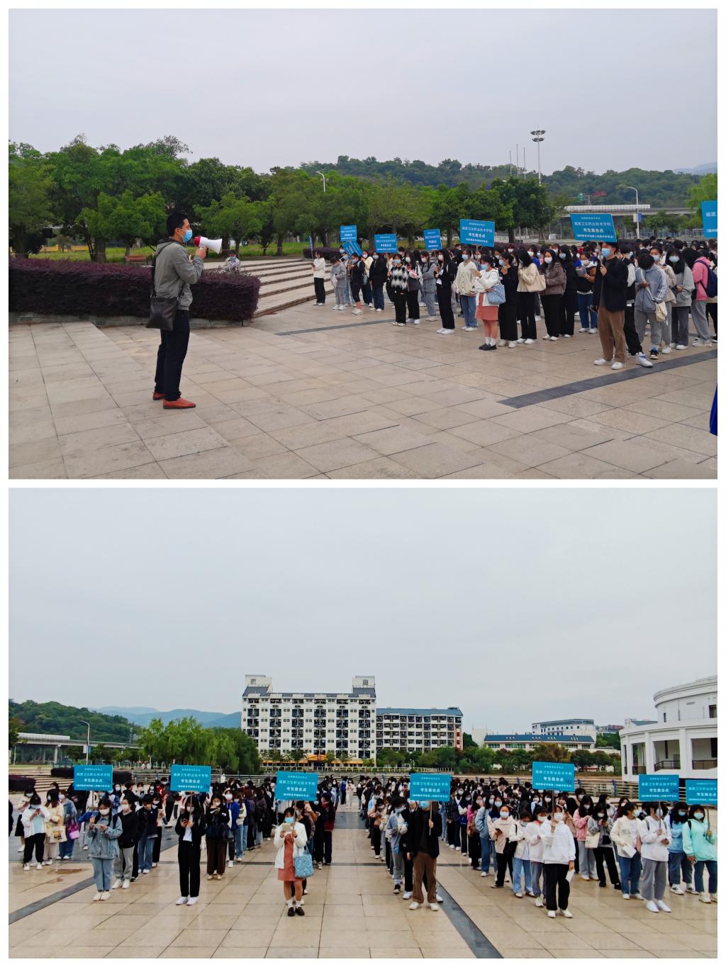 兩天的考試,繼續(xù)教育學院、學生工作部以及護理學院老師全程跟車,暖心護航;考生們嚴守疫情防控要求,佩戴口罩,聽從指揮,有序排隊。