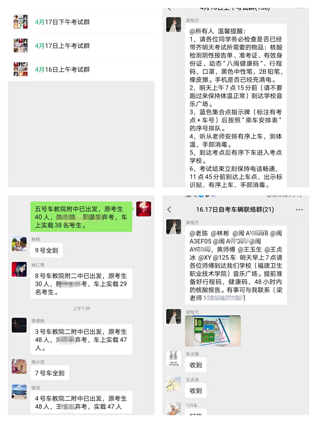 建立考生、工作人員、司機聯(lián)絡微信群