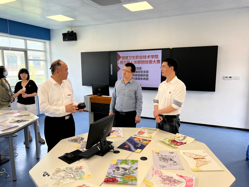 5月19日,校長許能鋒來到醫(yī)學院第四黨支部和醫(yī)學院解剖教研室,指導福建衛(wèi)生職業(yè)技術學院第五屆解剖繪畫大賽評選工作。本次比賽由校團委、醫(yī)學院第四黨支部、醫(yī)學院解剖教研室、校健康科普青年講團聯(lián)合舉辦?;顒庸彩盏饺?020級、2021級各專業(yè)學生提交的近200幅作品。經(jīng)過初次評選,40幅作品進入現(xiàn)場評選環(huán)節(jié)。