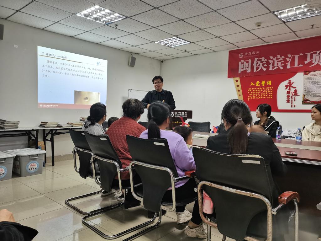 在健康服務(wù)環(huán)節(jié),醫(yī)學(xué)院教師第三黨支部書(shū)記陳銘為老人們帶來(lái)了“常用穴位與保健按摩”專題講座,深入淺出地講解中醫(yī)養(yǎng)生知識(shí),到場(chǎng)師生協(xié)助指導(dǎo)社區(qū)居民穴位定位,體驗(yàn)穴位按摩,讓社區(qū)居民受益匪淺。
