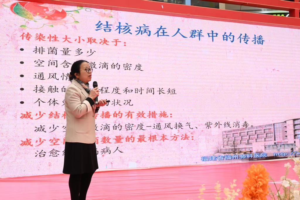 為響應福建省衛(wèi)生健康委員會推動結核病防治知識傳播活動的號召,推動全社會共同參與結核防治工作,營造全民關注、全民參與的良好氛圍。在第30個“世界法治結核病日”來臨之際,3月16日,我校聯(lián)合福建省疾病預防控制中心、福建省防癆協(xié)會、福建省科普服務中心、福建醫(yī)科大學附屬協(xié)和醫(yī)院、福建省福州肺科醫(yī)院、福建省級機關醫(yī)院、閩侯縣衛(wèi)生健康局、閩侯縣疾病預防控制中心和閩侯縣甘蔗街道社區(qū)衛(wèi)生服務中心等單位,在閩侯縣萬家廣場舉辦主題為“全面行動 全力投入 全民參與 終結結核”的結核病防治宣傳志愿活動。福建省防癆協(xié)會副秘書長黃智忠、福建省福州肺科醫(yī)院副院長陳曉紅、閩侯縣疾病預防控制中心主任黃小龍、閩侯縣疾病預防控制中心副主任陳曉燕、福建省級機關醫(yī)院護理部主任高云以及公共衛(wèi)生與健康管理學院黨政班子成員、師生黨員、學生志愿者以及各協(xié)辦單位來賓參加活動?;顒油ㄟ^“科普宣講+文藝展演+互動游戲+健康義診”四維聯(lián)動模式,將專業(yè)醫(yī)學知識轉化為群眾喜聞樂見的宣教形式,推動結核病防控知識深入基層,共同創(chuàng)建健康的社區(qū)生活。
