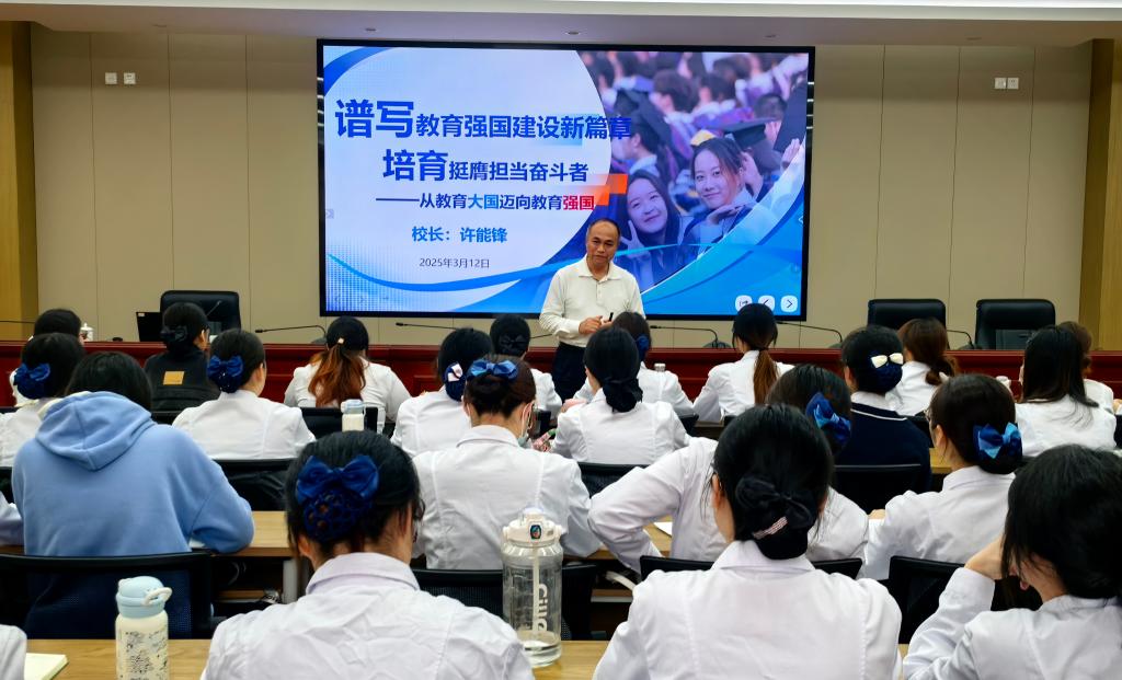 許能鋒指出,教育是國(guó)之大計(jì)、黨之大計(jì)。當(dāng)前,我國(guó)正從教育大國(guó)向教育強(qiáng)國(guó)邁進(jìn),《教育強(qiáng)國(guó)建設(shè)規(guī)劃綱要(2024-2035年)》為教育事業(yè)的發(fā)展擘畫了宏偉藍(lán)圖。我校作為培養(yǎng)高素質(zhì)醫(yī)藥衛(wèi)生人才的搖籃,將深入貫徹習(xí)近平總書記關(guān)于教育的重要論述,深化產(chǎn)教融合、科教融匯,著力培養(yǎng)適應(yīng)健康中國(guó)戰(zhàn)略需求的技術(shù)技能人才,為服務(wù)區(qū)域經(jīng)濟(jì)社會(huì)發(fā)展輸送更多“大國(guó)工匠”,以教育之強(qiáng)夯實(shí)國(guó)家富強(qiáng)之基。