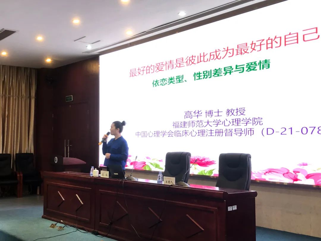 講座中,高華教授從愛情的內(nèi)涵、依戀類型和性別差異在愛情中的表現(xiàn)、什么是最美的愛情三個(gè)方面進(jìn)行了生動(dòng)有趣、啟迪人心的講授,深入淺出地詮釋了成熟的愛情觀。