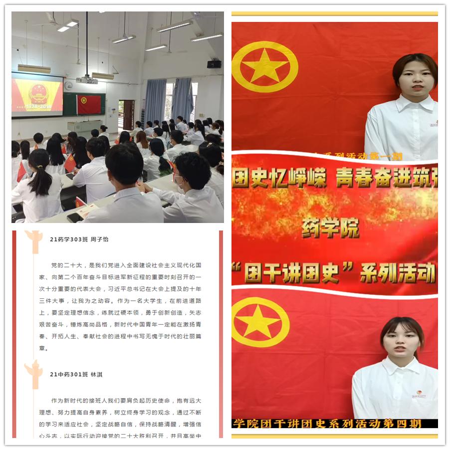 在藥學(xué)院黨總支的帶領(lǐng)下,團(tuán)總支組織學(xué)生積極投入黨的二十大精神學(xué)習(xí),開展團(tuán)學(xué)干部熱議黨的二十大勝利召開、團(tuán)學(xué)干部講團(tuán)史等活動(dòng),各班級(jí)團(tuán)支部開展學(xué)習(xí)貫徹黨的二十大精神專題學(xué)習(xí)、組織生活會(huì)、團(tuán)日活動(dòng)。團(tuán)員學(xué)生朝氣蓬勃,展現(xiàn)了堅(jiān)定不移跟黨走的信念與新時(shí)代青年學(xué)生的風(fēng)采,綻放出青年的光和熱。