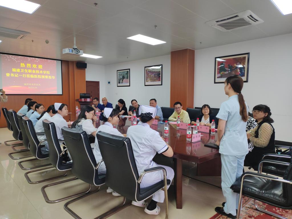 在福州長安中醫(yī)院,院長陳曉剛從醫(yī)院成立初心、發(fā)展現(xiàn)狀、擅長領(lǐng)域、特色診療到服務(wù)團隊,全方位介紹了醫(yī)院發(fā)展的基本情況,并通過生動形象的“三張名片”,展示了良好的醫(yī)院文化。他對我校已在醫(yī)院就業(yè)的30多位畢業(yè)生表示高度贊賞,并表示,醫(yī)院會繼續(xù)吸納我校優(yōu)秀人才,尤其是康復(fù)治療技術(shù)專業(yè)的畢業(yè)生,與我校開展全方位的合作。