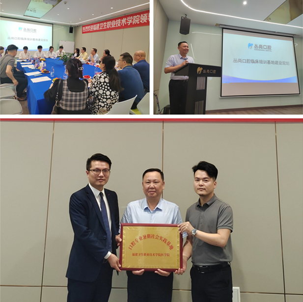 在叢尚口腔門診的座談會上,該企業(yè)陸煜昭院長簡要介紹了企業(yè)的組織架構(gòu)和經(jīng)營情況,并對叢尚口腔臨床培訓(xùn)基地建設(shè)規(guī)劃做了詳細介紹,表示出了高度的合作意愿,期待有更多我校優(yōu)秀學(xué)生加入到企業(yè)中來。曾武祈從學(xué)校歷史沿革、辦學(xué)規(guī)模、學(xué)科建設(shè)等方面介紹了學(xué)校的基本情況,并對企業(yè)所做的口腔臨床培訓(xùn)基地建設(shè)規(guī)劃表示充分肯定。希望以校企合作為契機,進一步加強雙方在人才培養(yǎng)方面的合作,提升人才培養(yǎng)質(zhì)量,滿足畢業(yè)生高質(zhì)量就業(yè)的迫切需求。座談會后,曾武祈為企業(yè)授牌,在開展暑期社會實踐方面達成初步合作。